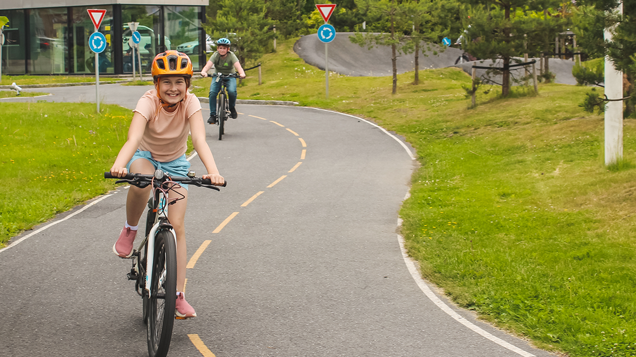 The Bike park is free to use if you bring your own bikes, but bike rental for kids is included in the entrance ticket. In addition to the bikeway with signs and stop lights, the Bike park has a «Pump Track» with appropriately sized humps for bigger kids to develop their bike skills.