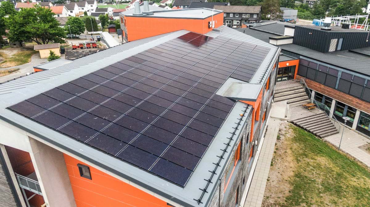 Solenergi er en fornybar ressurs, og med teknologi som solceller og solfangere kan vi bruke den stadig mer effektivt – akkurat slik Trosvik skole gjør her.